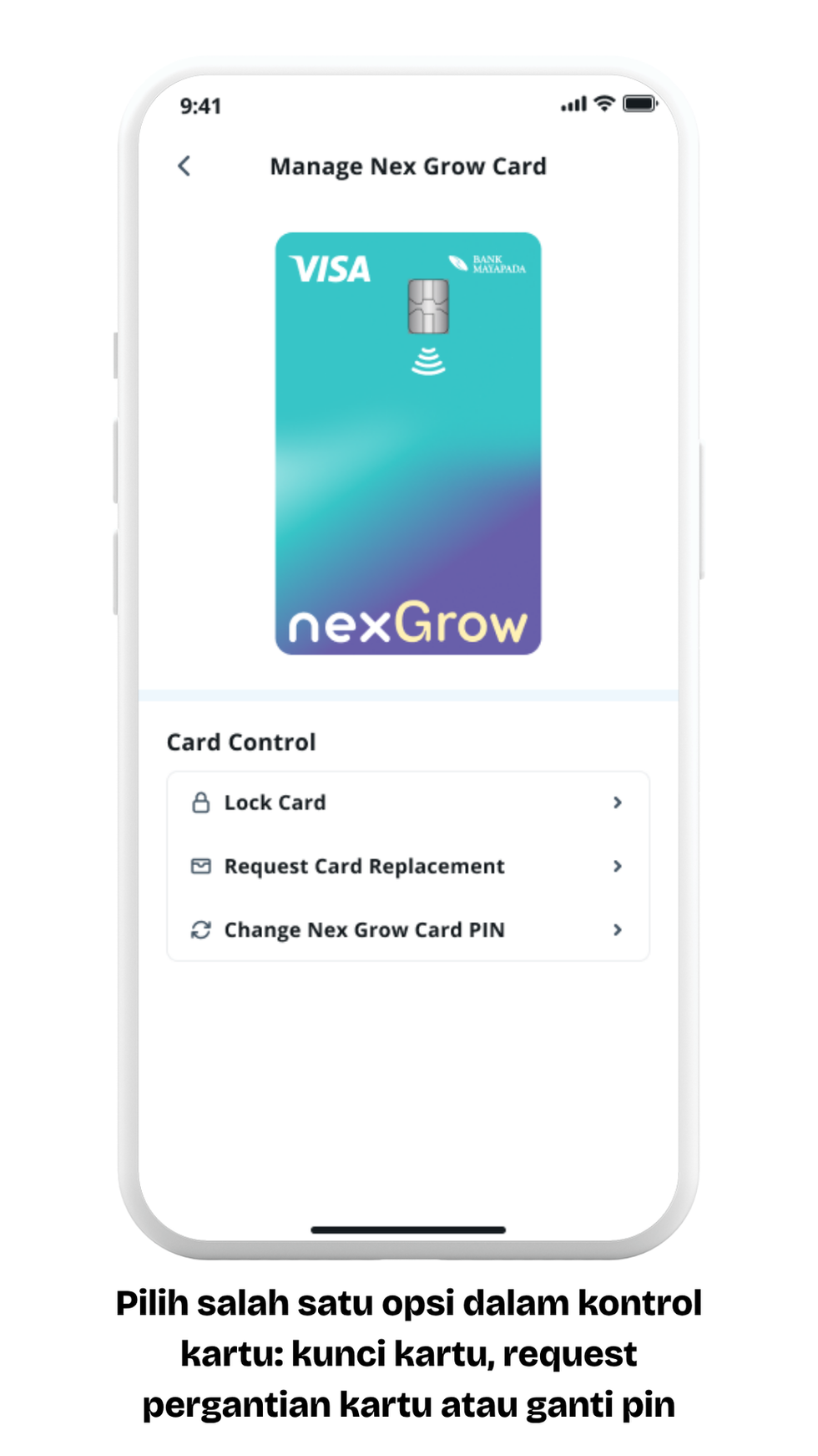 Keamanan adalah prioritas utama. Aplikasi Nex memberikan kamu kuasa penuh untuk melindungi kartu kamu.